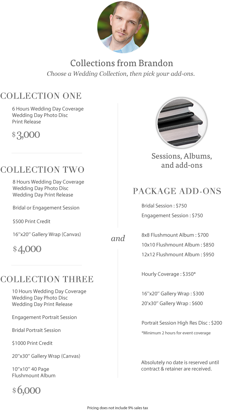 Brandon O’Neal will be photographing your wedding day personally.